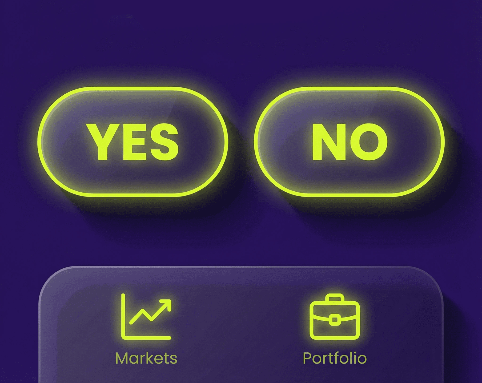 Event-based speculation with a simple YES/NO interface. Swipe through card stacks, tap your prediction, and earn XP regardless of outcome.